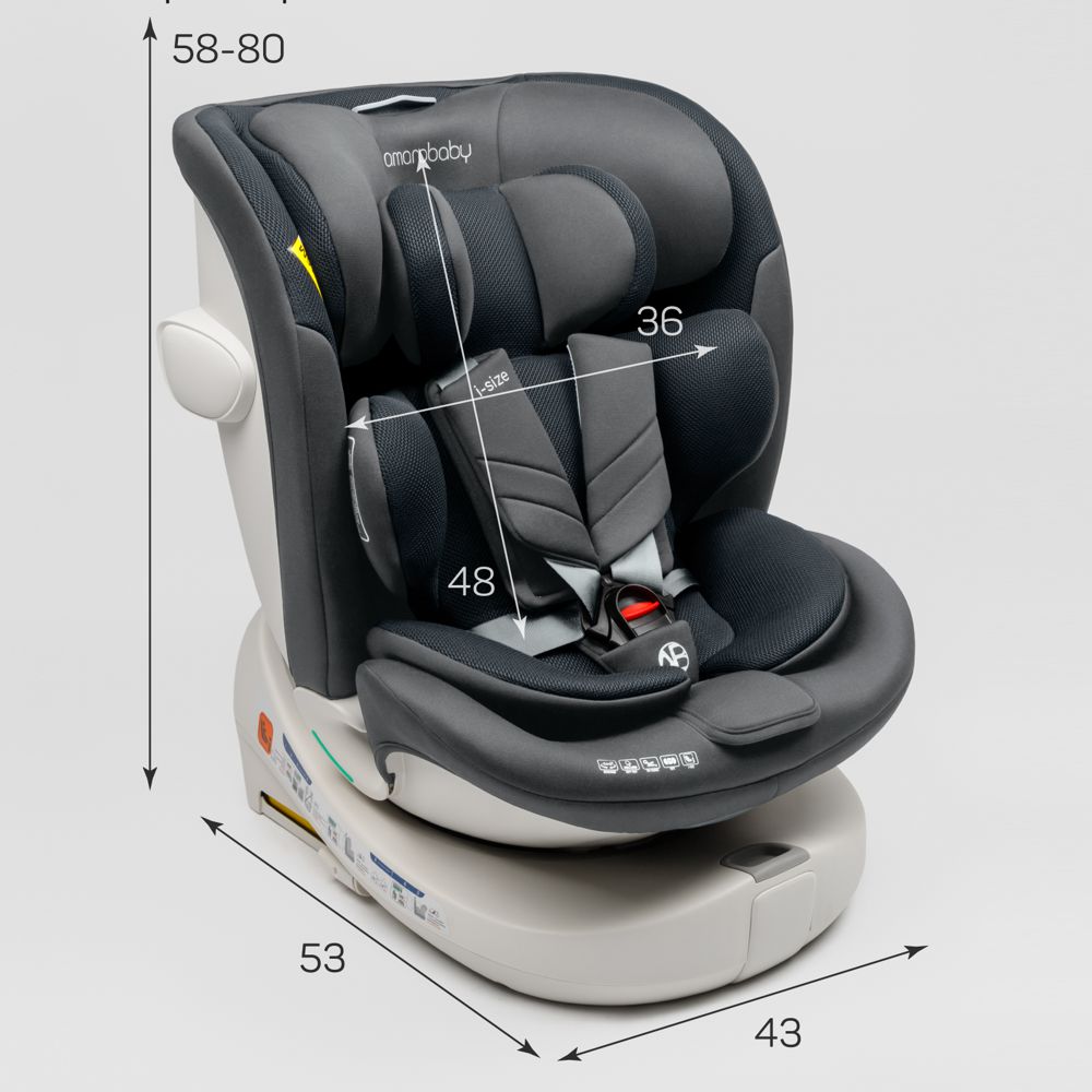 Универсальное автокресло от бренда AmaroBaby - Defender i-Size - отличное решение для всех возрастов! Модель соответствует последнему европейскому стандарту безопасности R129 (i-Size) и подходит для детей весом до 36 кг и ростом до 150 см. Инновационная база вращается на 360 градусов, а системы креплений ISOFIX и Top Tether обеспечивают максимально надежную фиксацию в автомобиле. В активе - продуманная система безопасности: усиленная защита от боковых ударов SIP, а пятиточечные ремни с улучшенной пряжкой и удлиненными внутренними ремнями не только создают надежный кокон для вашего ребенка, но и позволяют легко фиксировать даже самых крупных детей.Кресло имеет 8 положений спинки (4 по ходу движения и 4 против), регулируемый подголовник и специальный мягкий вкладыш для новорожденных. Продуманная система вентиляции с сетчатыми материалами и каналами в корпусе обеспечивает отличную циркуляцию воздуха даже в жаркую погоду. Эргономичный дизайн и качественные материалы создают идеальные условия для безопасных и комфортных путешествий всей семьей.