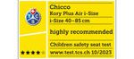 ![]() | Модификация Chicco Kory i-Size PLUS получило высокую оценку независимого немецкого клуба автолюбителей ADAC по результатам краш-тестов и других испытаний. |