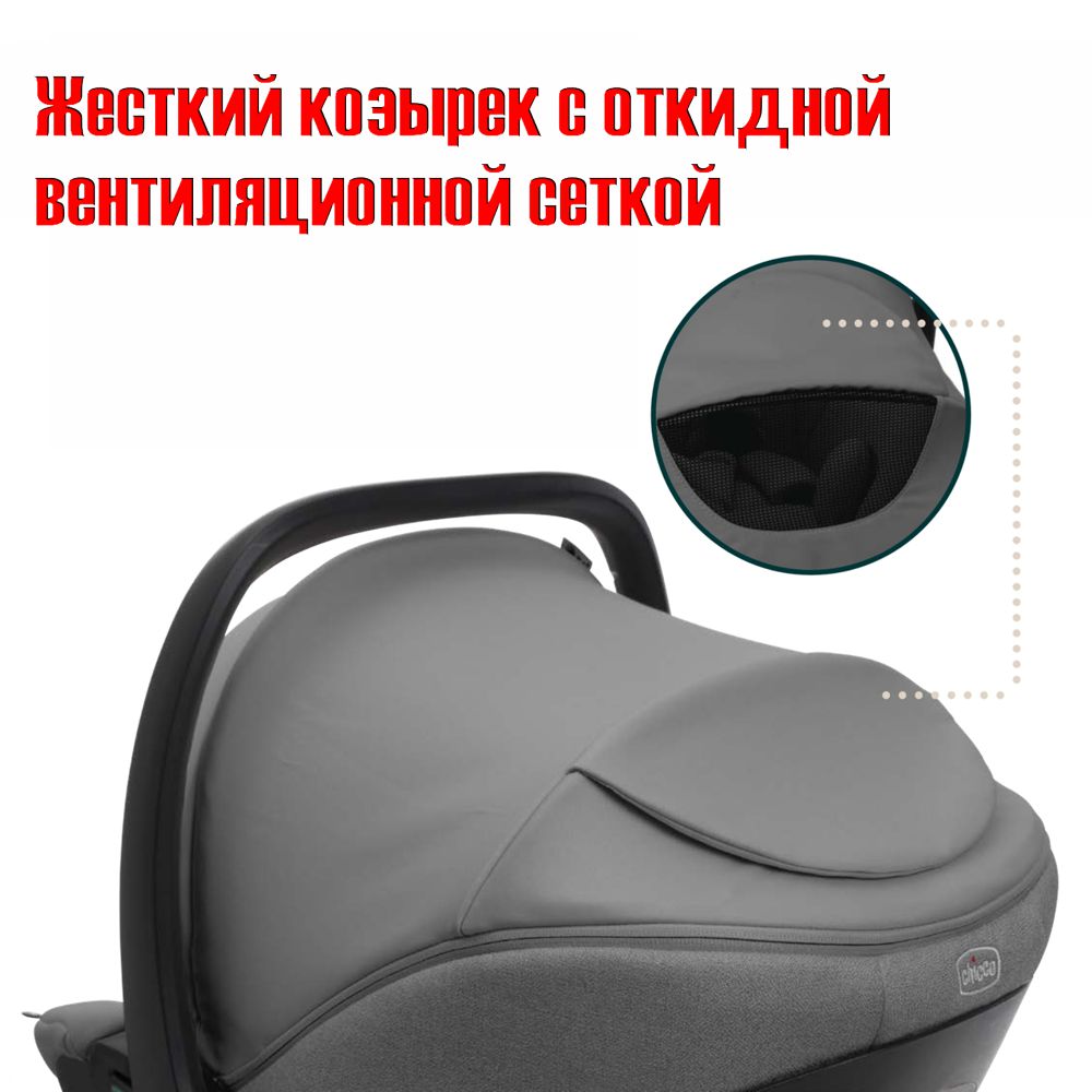 Модификация Chicco Kory i-Size PLUS отличается возможностью регулировки высоты подголовника в 6 положениях и наличием жесткого раздвижного козырька, не требующего фиксации за ручку |