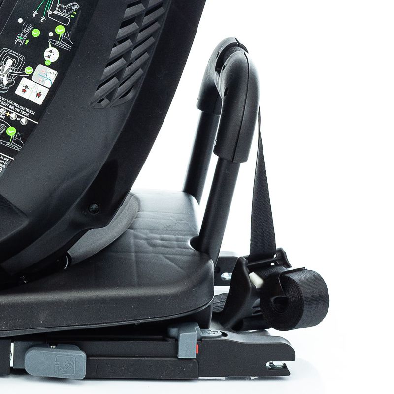Важным преимуществом можно считать конструкцию якорного ремня, который закреплен на бампере автокресла и не препятствует свободному вращению чаши.Когда рост малыша превысит 76 см, а возраст 15 месяцев, допускается использовать детское сиденье в положении по ходу движения. В обоих случаях ребенок удерживается внутренними 5-точечными ремнями с мягкими накладками. По достижении роста ребенка 105 см, внутренние ремни убираются в ниши в корпусе кресла и подросток вместе с автокреслом удерживается штатными 3-точечными ремнями безопасности автомобиля.