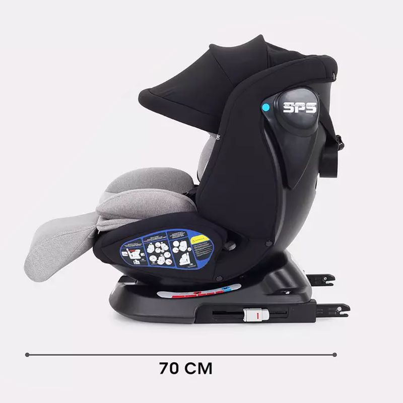 Для удобства посадки и высадки применен механизм поворота на 360°, разблокируемый при нажатии клавиши у основания платформы. Кресло имеет 3 положения наклона чаши как по ходу, так и против хода движения, что позволяет малышу отдохнуть в длительном путешествии.