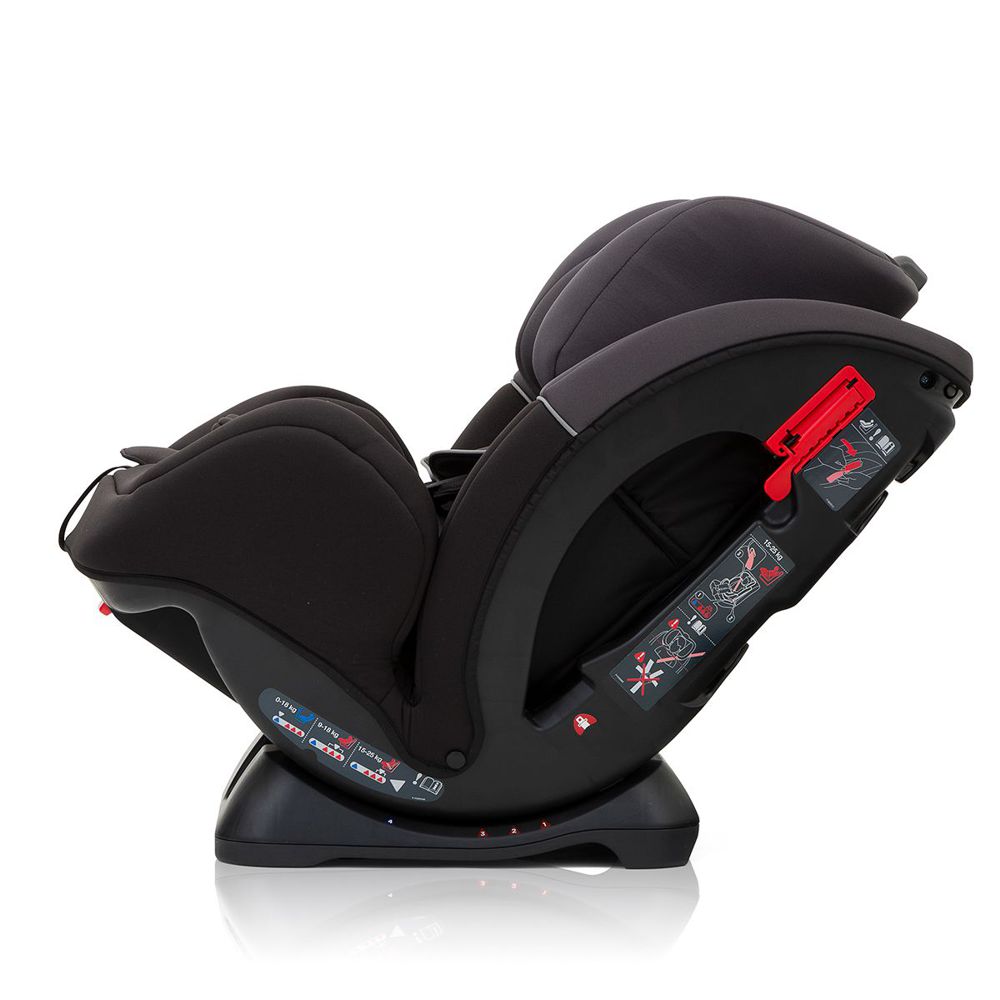 Автокресло имеет 4 возможных положения наклона, одно при установке против хода движения с глубоким наклоном, удобное для безмятежного сна младенца и 3 при установке лицом вперед. Подголовник автокресла регулируется под рост ребенка вместе с внутренними ремнями в 5-ти положениях одним движением. Когда ребенок становится тяжелее 18 кг, внутренние ремни и пряжка легко и быстро убираются в специально предусмотренные ниши в корпусе.