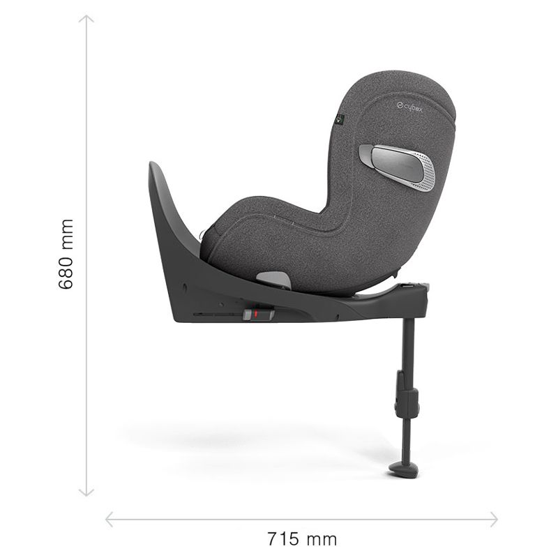 Кресло может эксплуатироваться весь период использования в наиболее безопасном положении против хода движения, однако при необходимости, но не ранее возраста 15 месяцев, можно установить его и по ходу движения автомобиля Sirona T i-Size устанавливается в автомобиле на ISOFIX-базы Cybex Base T или Cybex Base Z2 (в комплекте не поставляется), а ребенок удерживается с помощью пятиточечных внутренних ремней с мягкими накладками.