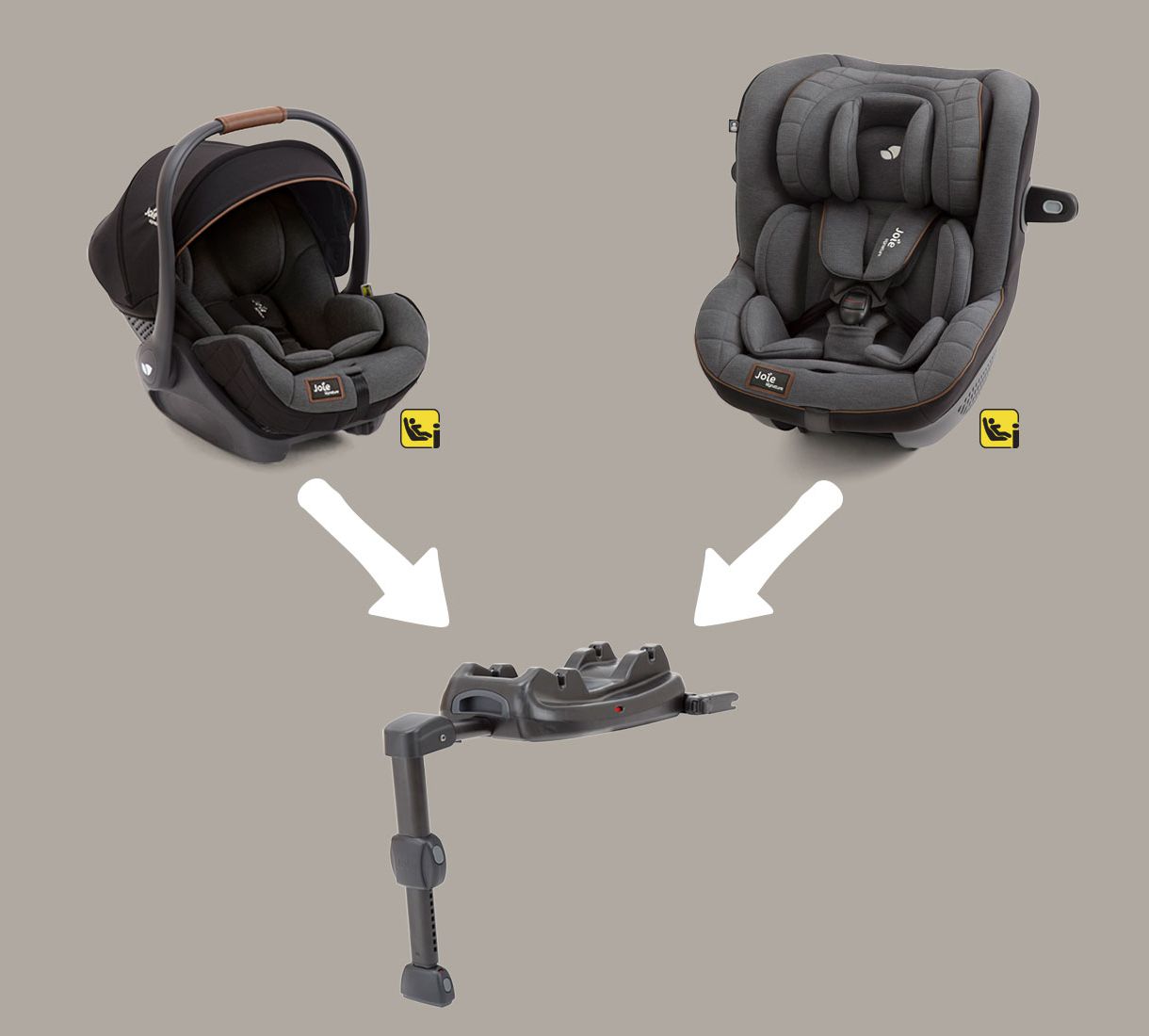 Кресло устанавливается в автомобиле против хода движения на базы изофикс (не поставляются в комплекте, приобретаются отдельно) Joie i-Base ™ Encore или Joie i-Base LX2, позволяющими также устанавливать автолюльки Joie Calmi™, Joie i-Snug™ 2, Joie i-Gemm™ 2, Joie i-Gemm™ 3.