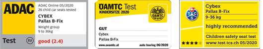 Безопасность Cybex Pallas B-Fix подтверждена испытаниями сразу нескольких авторитетных европейских независимых клубов автолюбителей из Германии, Австрии и Швейцарии.