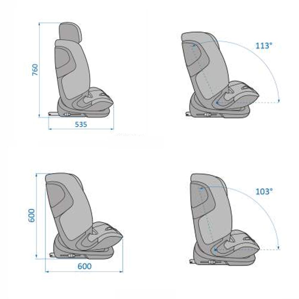 Для комфортного путешествия кресло оснащено механизмом регулировки наклона в 4 положениях, позволяющим юному путешественнику поспать в дороге.