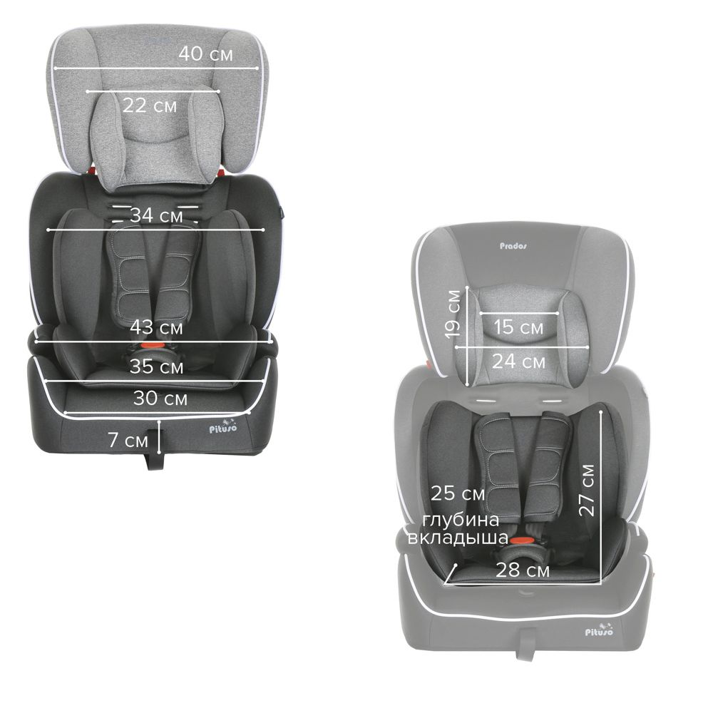 Детское автокресло группы 1-2-3 Pituso Prados Isofix (Питузо Прадос Изофикс) предназначено для безопасной перевозки детей весом от 9 до 36 килограмм, что примерно соответствует возрасту от года до 12 лет.