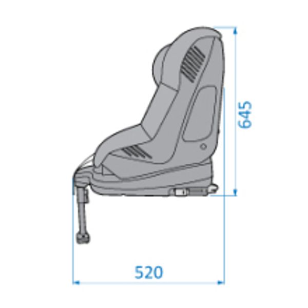 Кресло устанавливается по ходу движения и фиксируется в автомобиле с помощью креплений ISOFIX с индикаторами правильной установки и дополнительного упора в пол, также оснащенного цветовым индикатором. Ребенок удерживается внутренними 5-точечными ремнями безопасности с мягкими накладками.