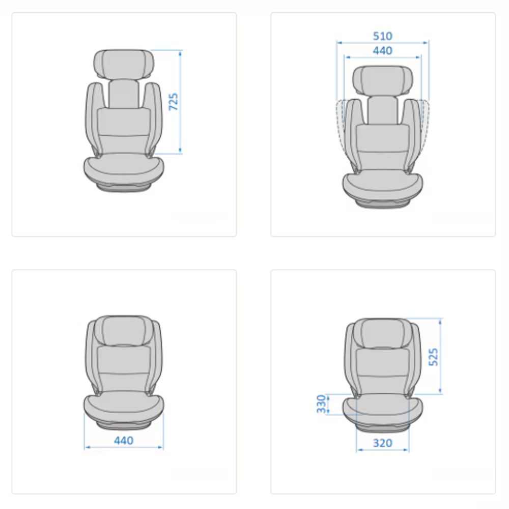 Боковые части кресла раздвигаются, адаптируясь под растущего ребёнка, а подголовник можно легко отрегулировать по высоте одной рукой.
