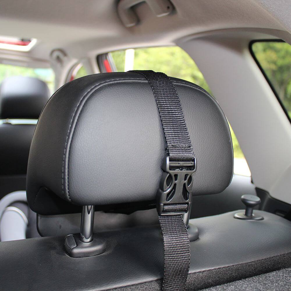 Оно надежно фиксируется к подголовнику при помощи специальных ремешков.
