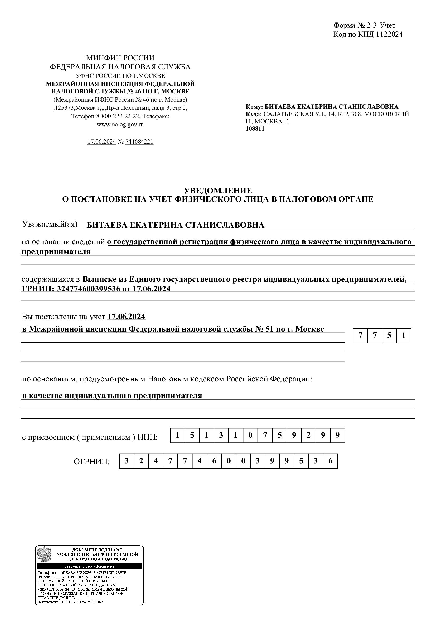 | Наименование: | ИП Битаева Екатерина Станиславовна |